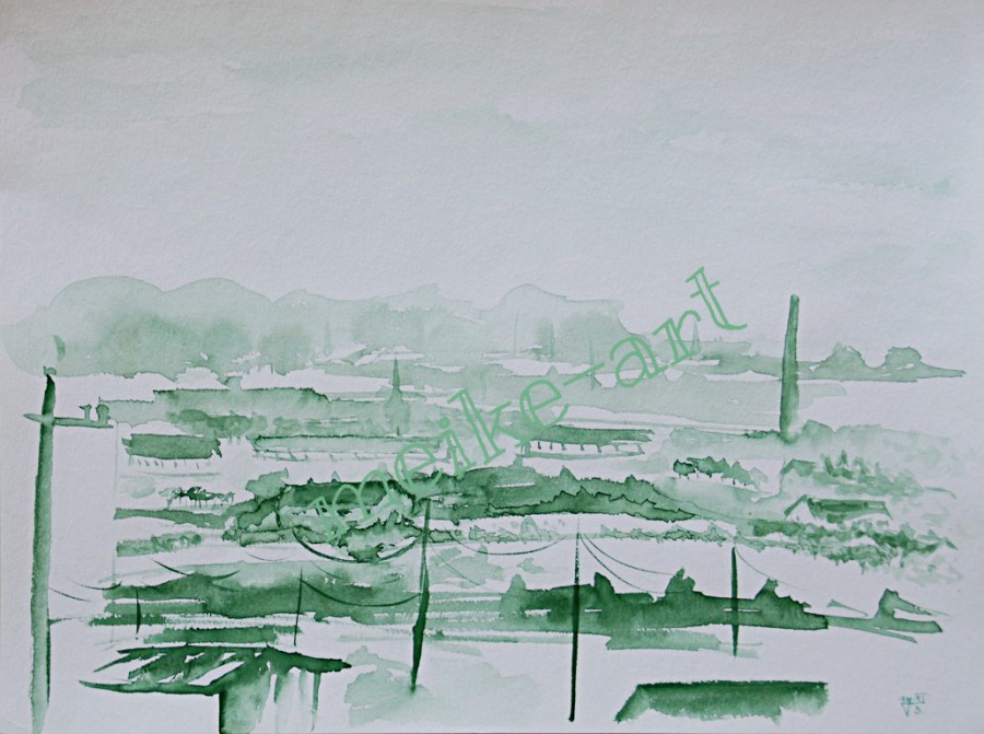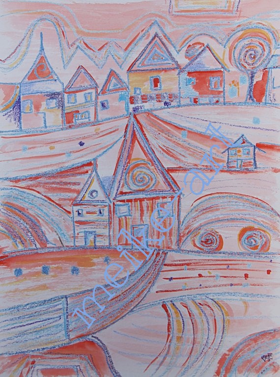 Häuserlandschaft komplementär 30x40cm, 2011
